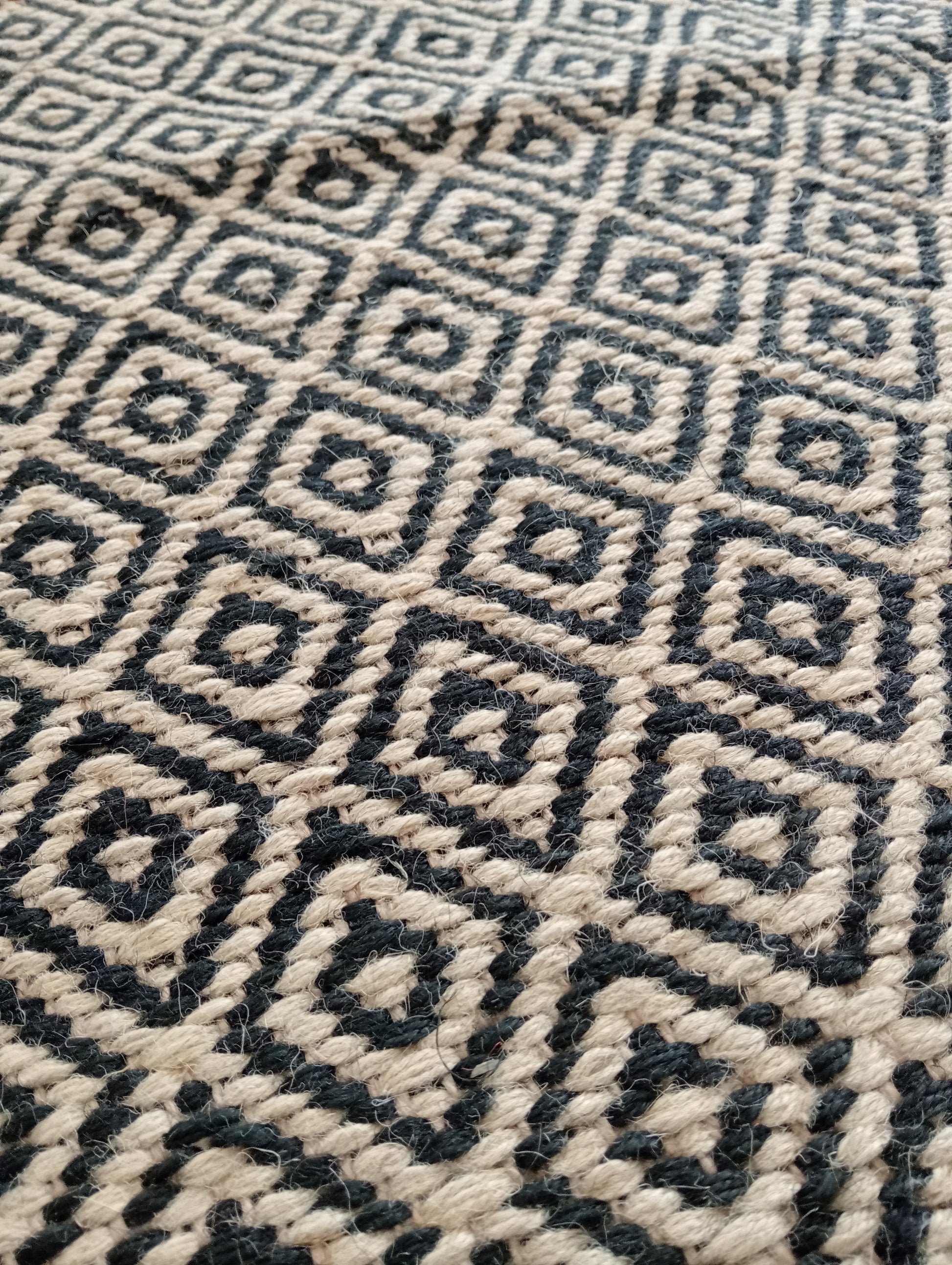 Indulge in sophistication and exclusivity with this lovely handwoven jute door mat in Black. It boasts a beautiful diamond pattern that adds a touch of elegance to any space. Experience the longevity of natural materials while showcasing your unique and stylish taste.