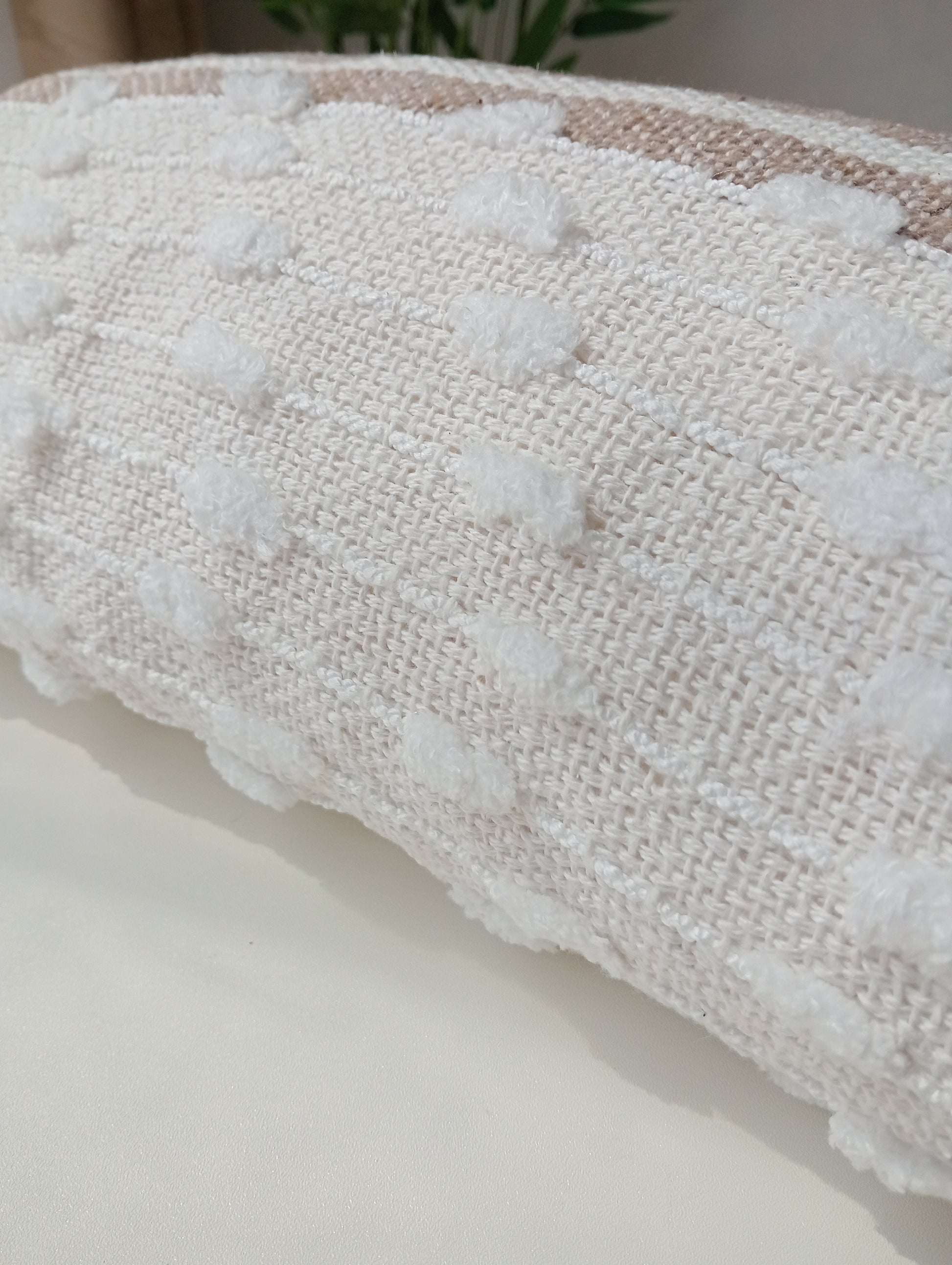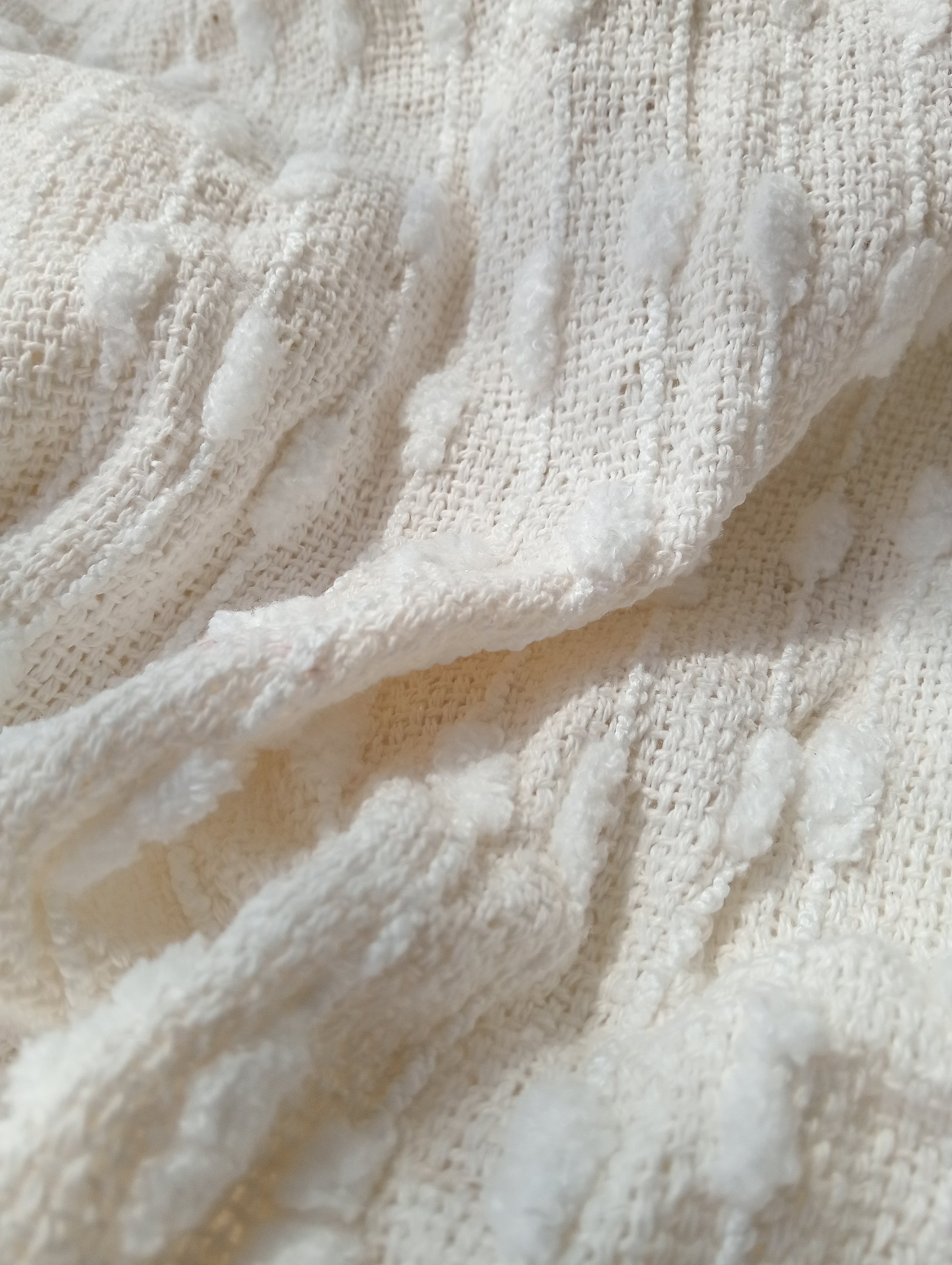 - Weave: Features a distinctive bobble (noduli) weave — rows of raised knots create a plush, dimensional surface that feels cozy and inviting.